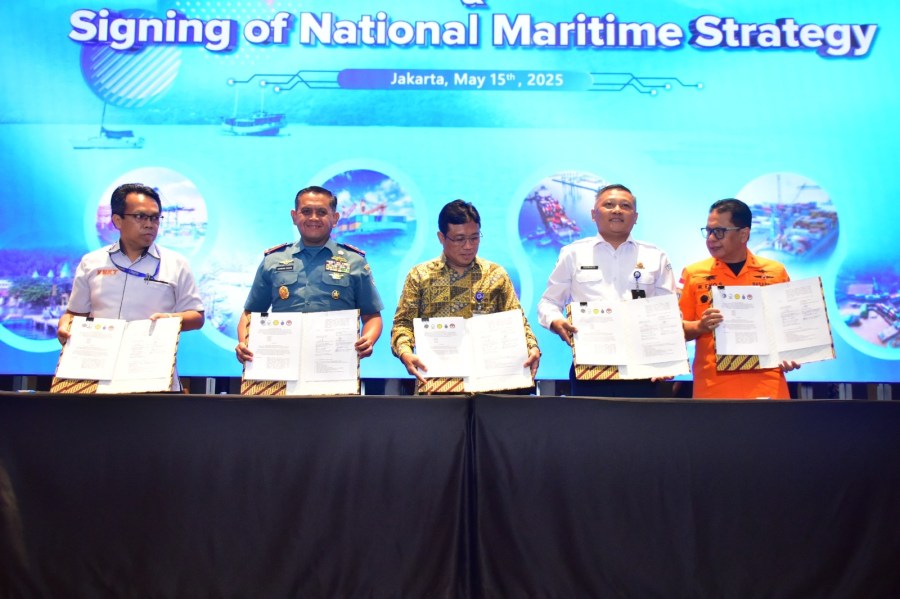 Penandatanganan Keputusan Bersama Strategi Maritim Nasional dilakukan dalam kegiatan High-Level Meeting yang diselenggarakan di ruang Luna, Hotel Movenpick, Gambir, Jakarta Pusat, Kamis (15/5/2025) dengan melibatkan lima institusi strategis diantaranya Direktur Jenderal Perhubungan Laut (Dirjen Hubla) Kemenhub, Badan Meteorologi, Klimatologi, dan Geofisika (BMKG), Badan Nasional Pencarian dan Pertolongan (Basarnas), Pusat Hidro-Oseanografi TNI AL (Pushidrosal), dan Komite Nasional Keselamatan Transportasi (KNKT).