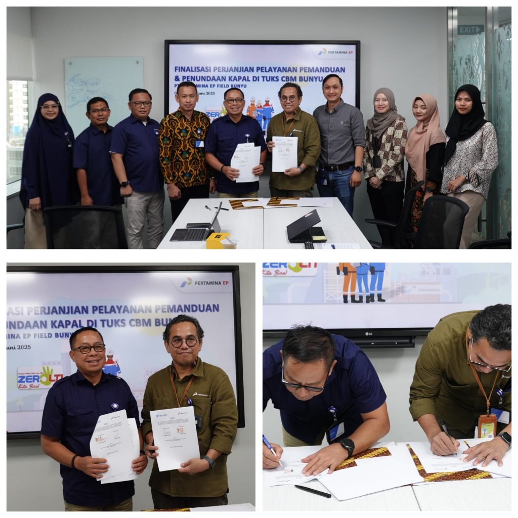 Penandatanganan perjanjian kerja sama yang berlangsung di Graha Elnusa, di Jakarta, Kamis (12/6/2025) lalu yang dilakukan Executive Director 4 Pelindo Regional 4, Abdul Azis yang didampingi General Manager Pelindo Regional 4 Tarakan, Amrullah, bersama Senior Manager Bunyu Field PT Pertamina EP, Despredi Akbar.
