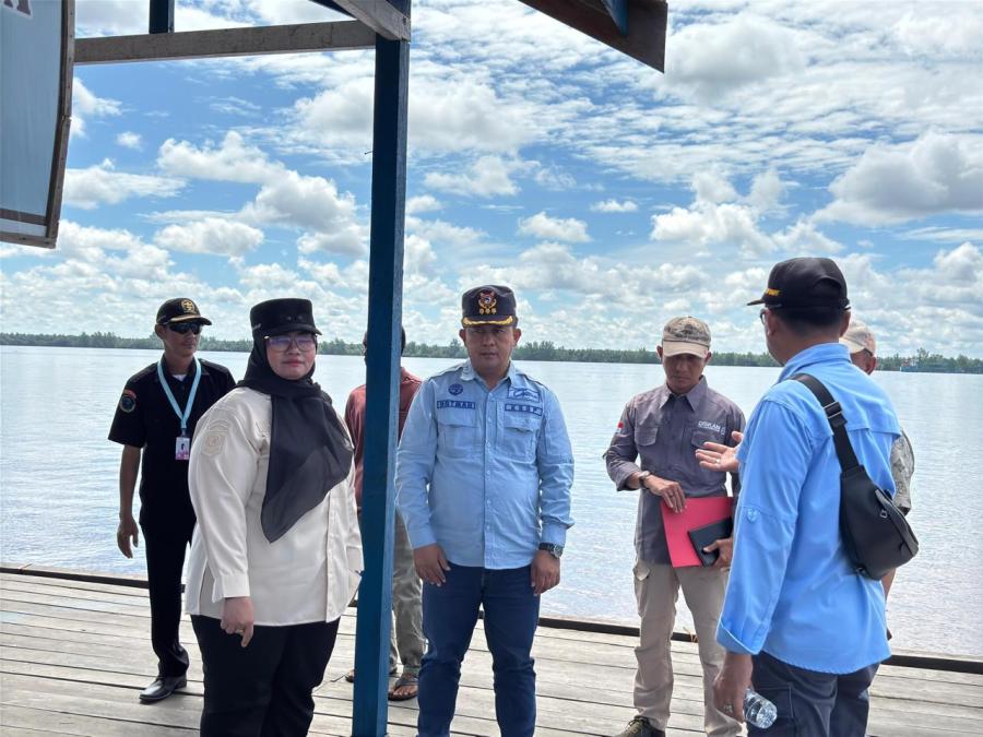 Kepala Kantor Kesyahbandaran dan Otoritas Pelabuhan (KSOP) Kelas III Sampit Hotman Siagian bersama Wakil Bupati Kotawaringin Timur Irawati,Spd, M.A.P dan Kepala Dinas Perikanan Drs.Ahmad Sarwo Oboi, Camat Mentaya Hilir Selatan, Wakil Nelayan dan Tim dari instansi terkait dengan gerak cepat aksi tindak lanjut dan survey bersama ke lokasi dermaga Sei Ijum Raya Sampit, Kalimantan Tengah, Sabtu (21/6/2025).