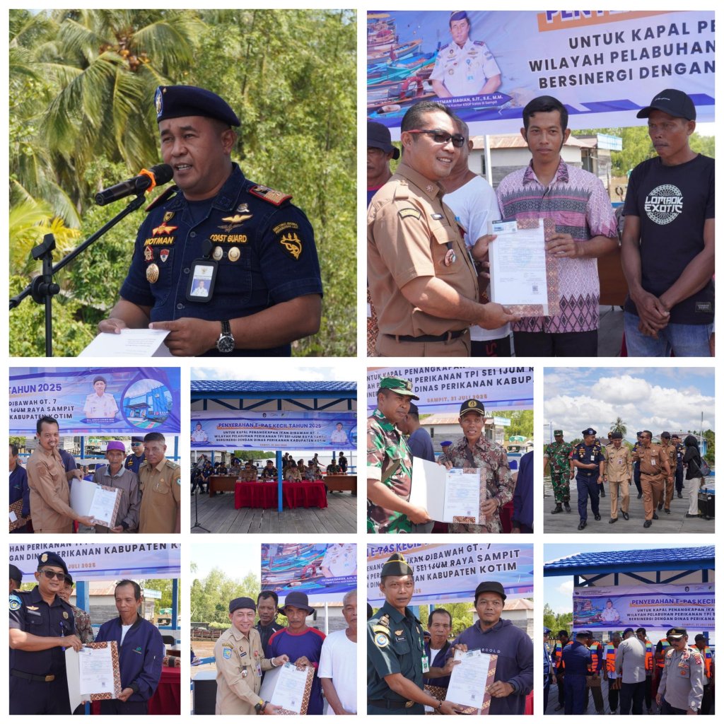 Kementerian Perhubungan Cq Direktorat Jenderal Perhubungan Laut melalui Kantor Kesyahbandaran dan Otoritas Pelabuhan (KSOP) Kelas III Sampit menyelenggarakan kegiatan sosialisasi keselamatan pelayaran melalui pemberian 34 dokumen E- Pas Kecil (tanda daftar kapal /keabsahan kapal berbasis elektronik secara gratis yang harus dimiliki oleh setiap pemilik kapal) dan sekaligus pemberian life jacket kepada nelayan bertempat di Pelabuhan Perikanan TPI Sei Ijum Raya, Kota Waringin Timur (Kotim), hari ini, Senin pagi (21/7/2025).