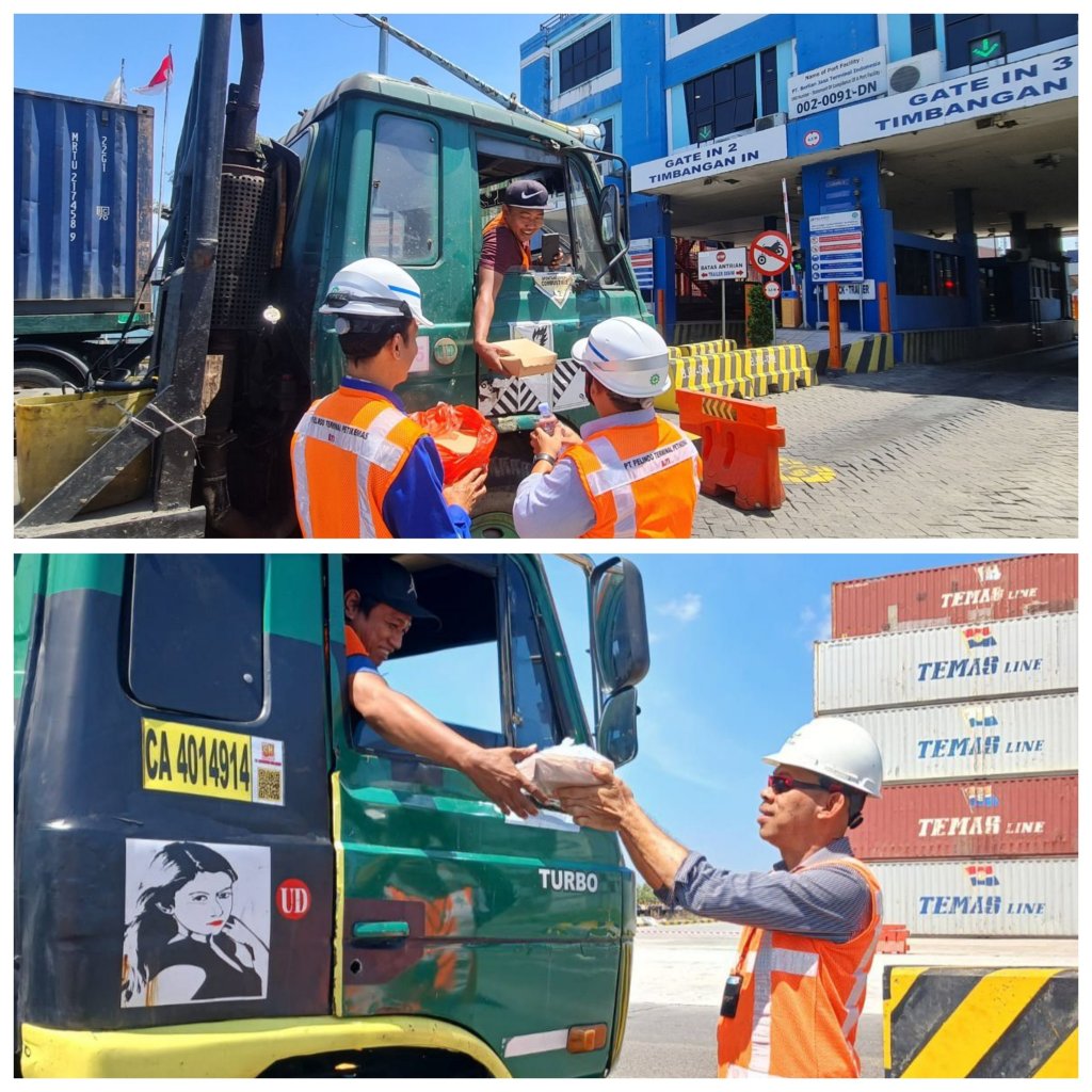 TPK Teluk Lamong, TPK Berlian dan TPK Nilam bersama sama melaksanakan program “Pelindo Berbagi” dengan membagikan sebanyak 375 paket makanan sehat kepada para driver eksternal dan Tenaga Kerja Bongkar Muat (TKBM) di area terminal.